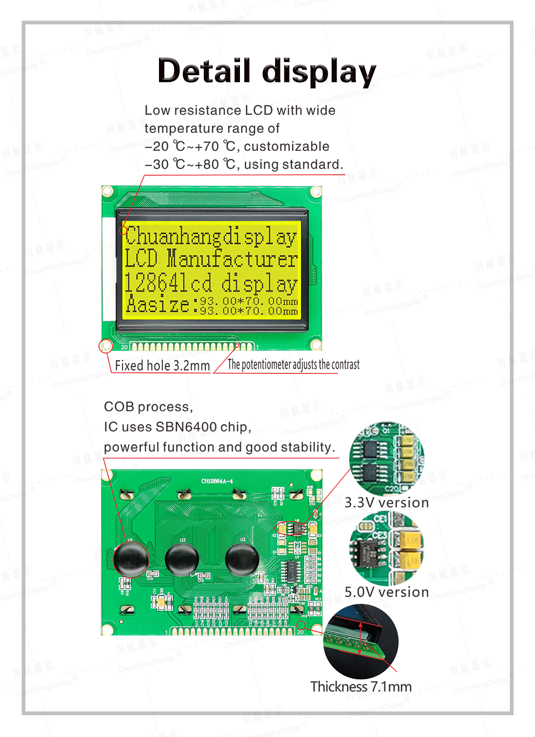 1.3 Low power consumption, there are two power modes of 5V/3.3V, no backlight current within 8mA, backlight current within 100mA.