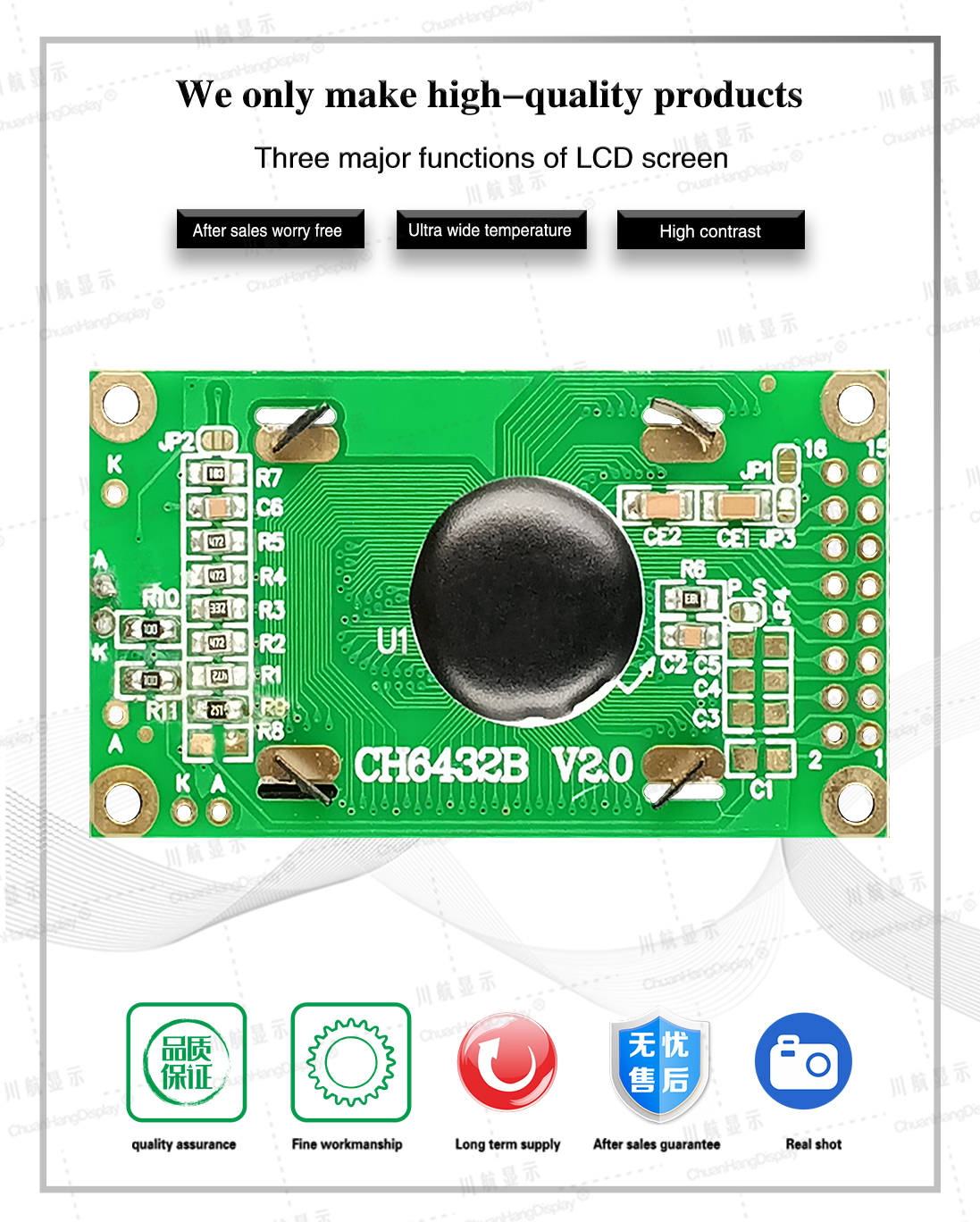 1.2 IC uses st7920, built-in simplified Chinese character library or traditional Chinese character library two options.