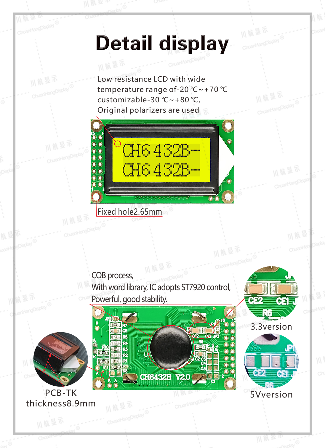 1.3 Low power consumption, there are two power modes of 5V/3.3V, no backlight current within 3mA, backlight current within 20mA.