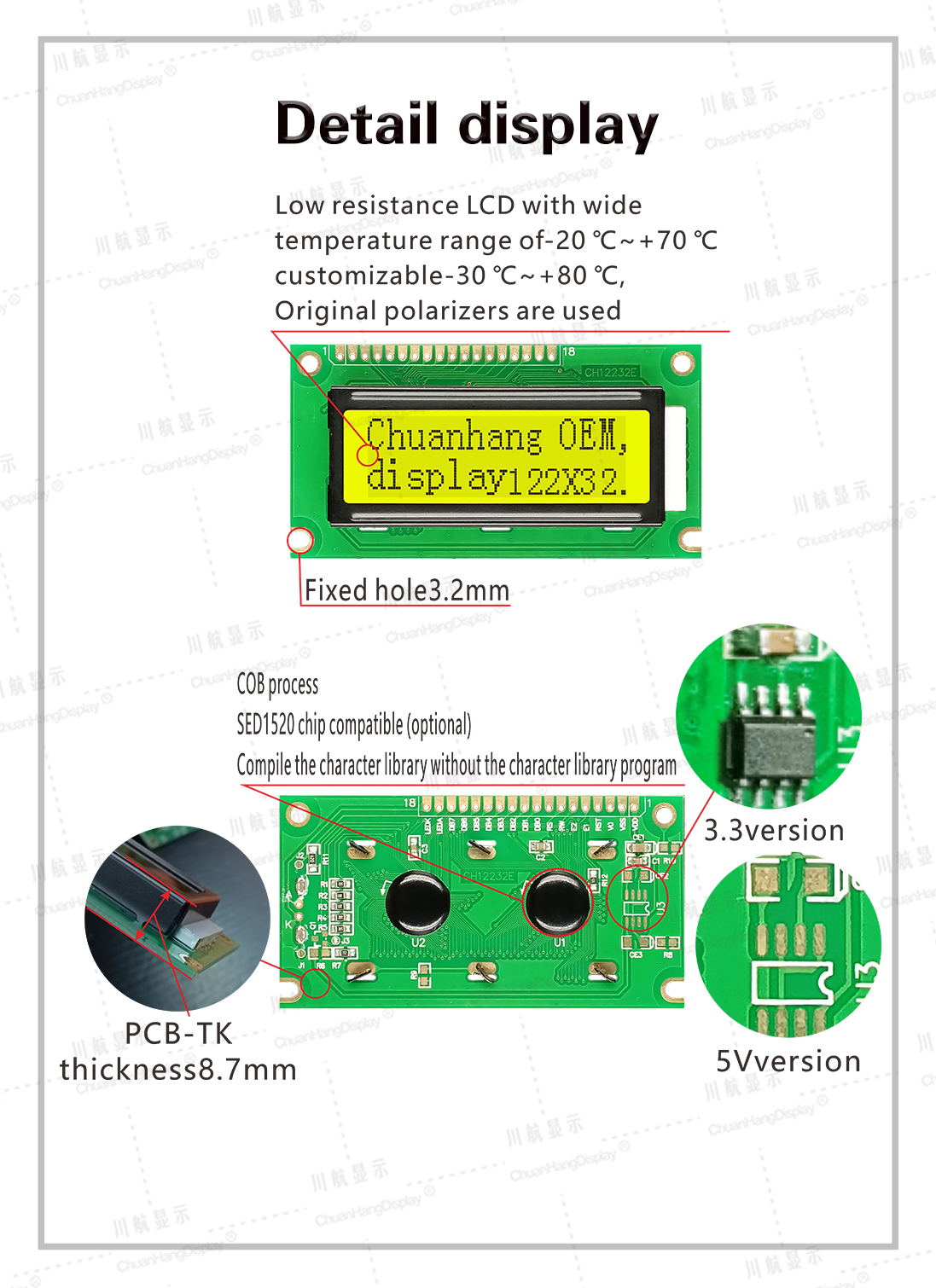 1.3 Low power consumption, 5V/3.3V two power modes, no backlight current within 3mA, backlight current within 40mA.