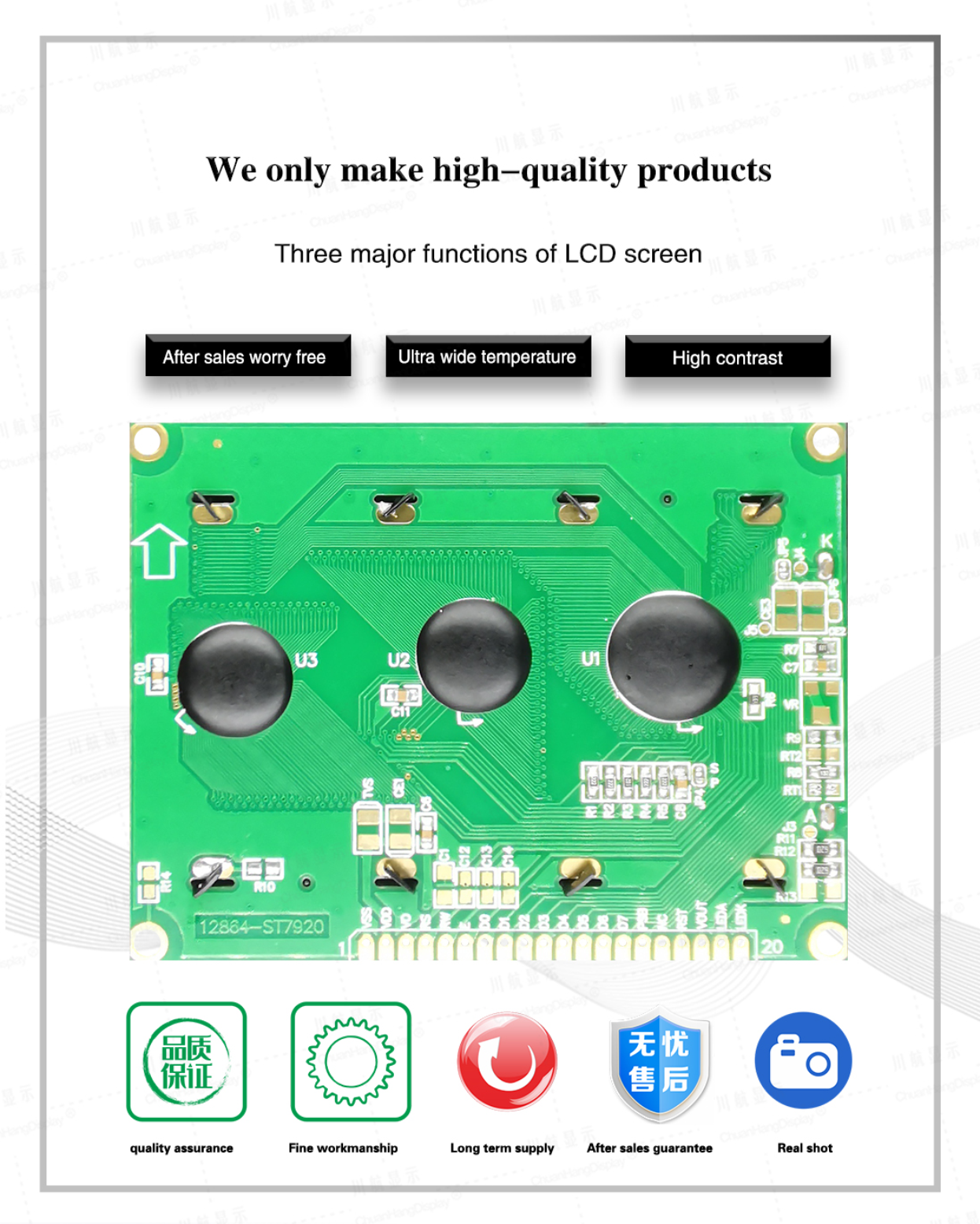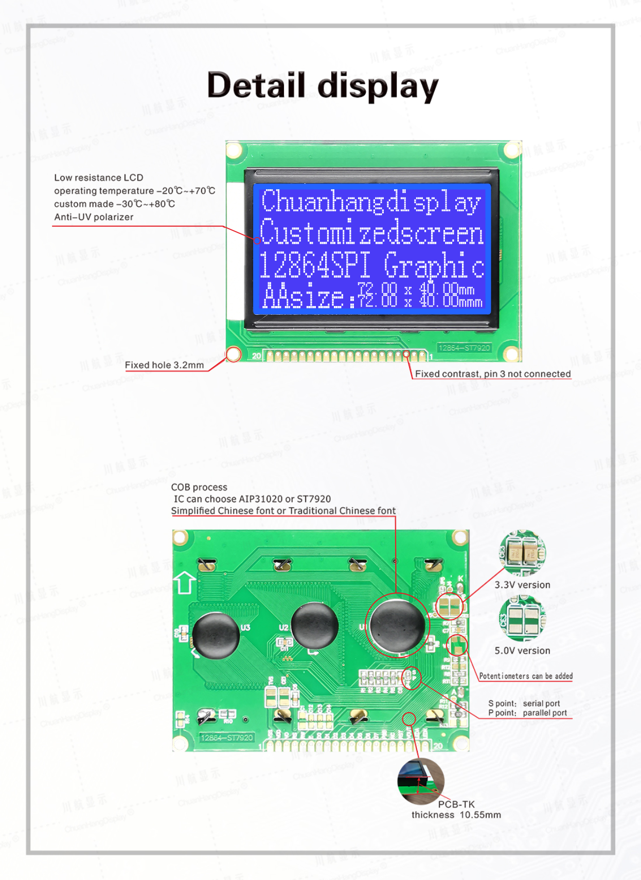 1.2 IC uses st7920, two chip options for simplified Chinese character library or traditional Chinese character library.