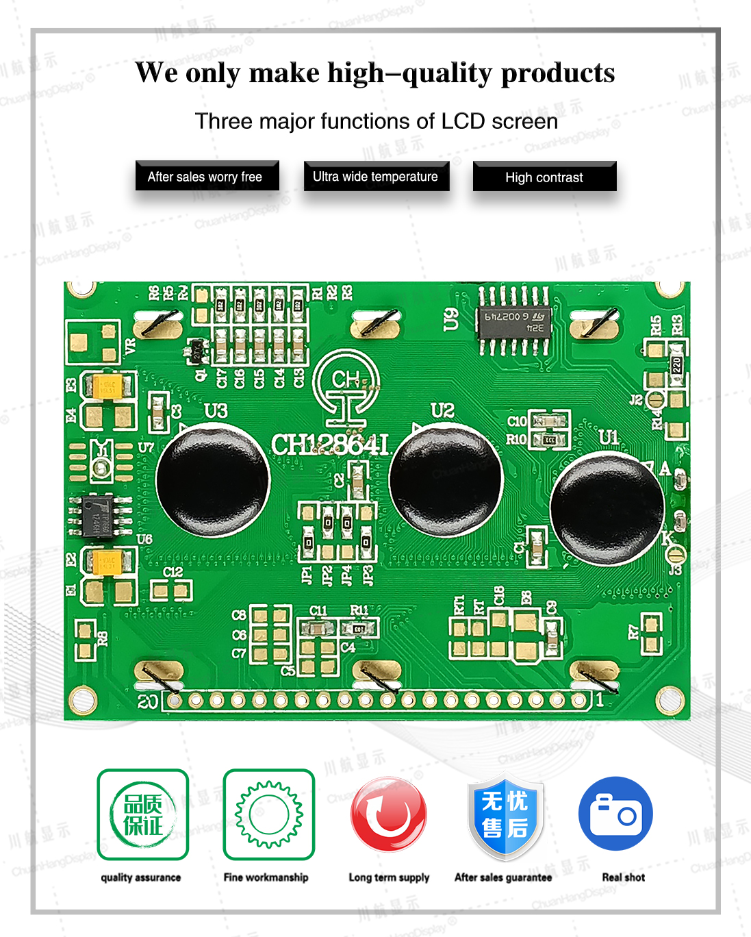 1.3 Low power consumption, there are two power supply modes of 5V/3.3V, no backlight current within 8mA, backlight current within 100mA.