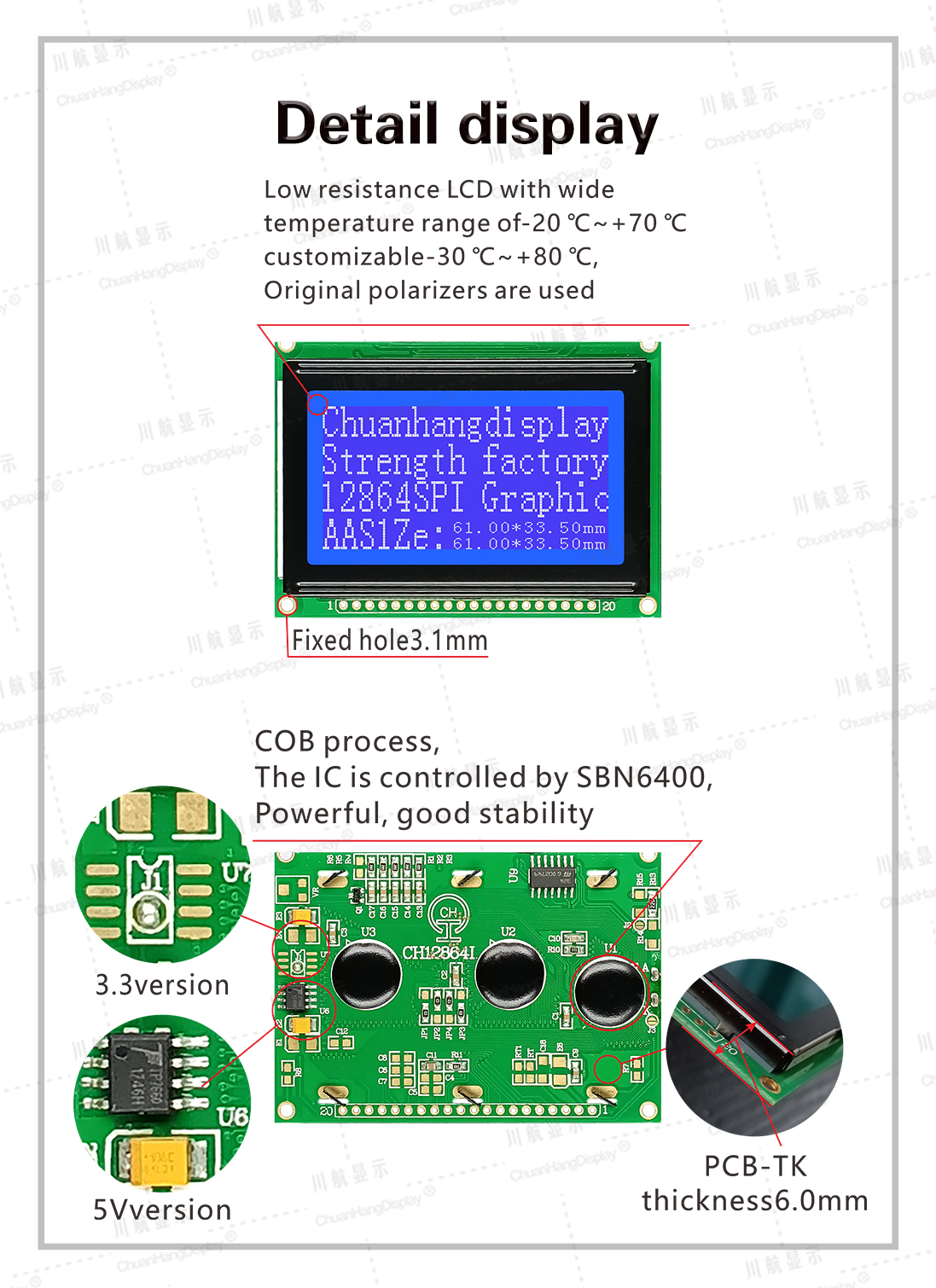 1.2 IC uses SBN6400/AIP31108, there is no font library in the chip, programmers compile font library by themselves.