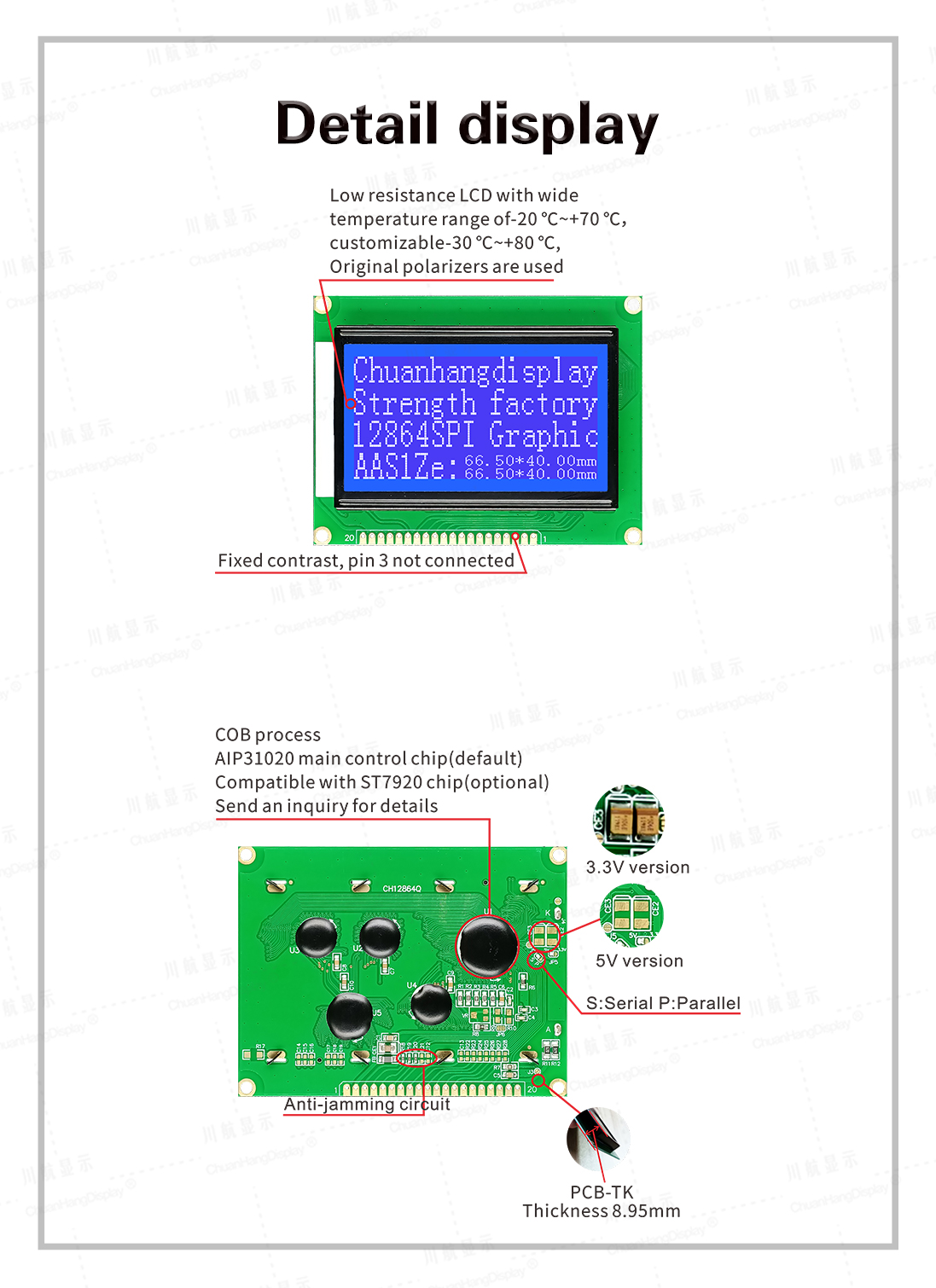 CH12864Q 12864 LCD Display (COB+PCB)