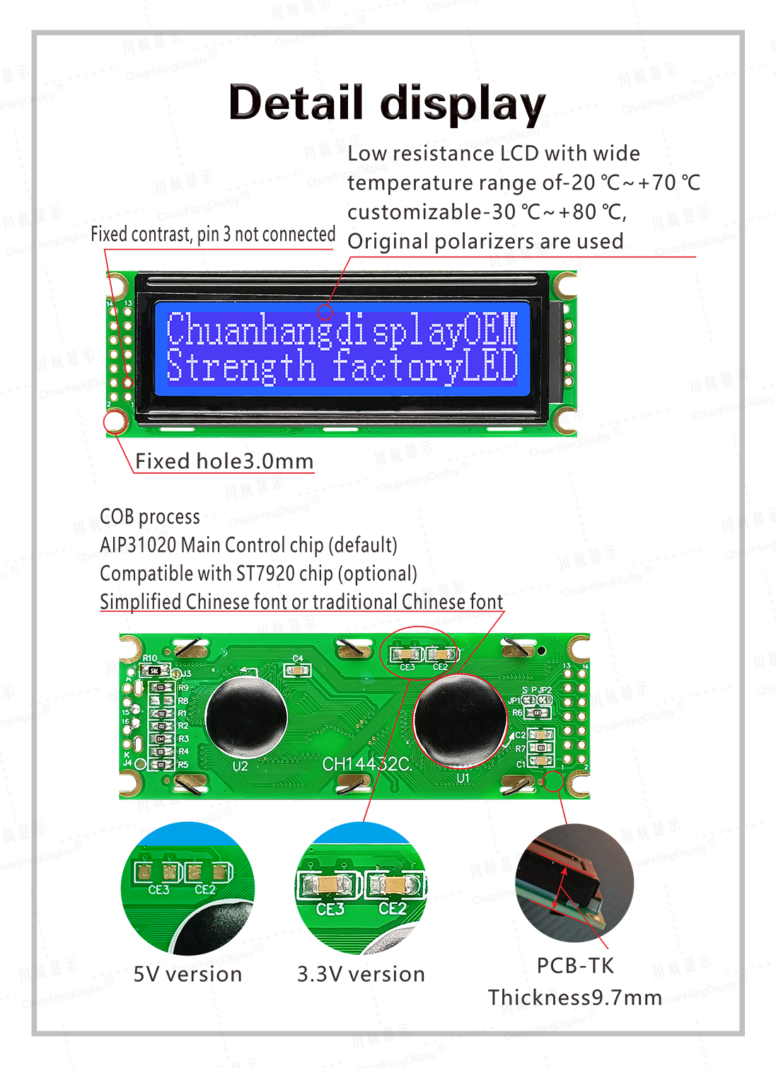 1.3 Low power consumption, with two power modes of 5V/3.3V, no backlight current within 8mA, backlight current within 50mA.