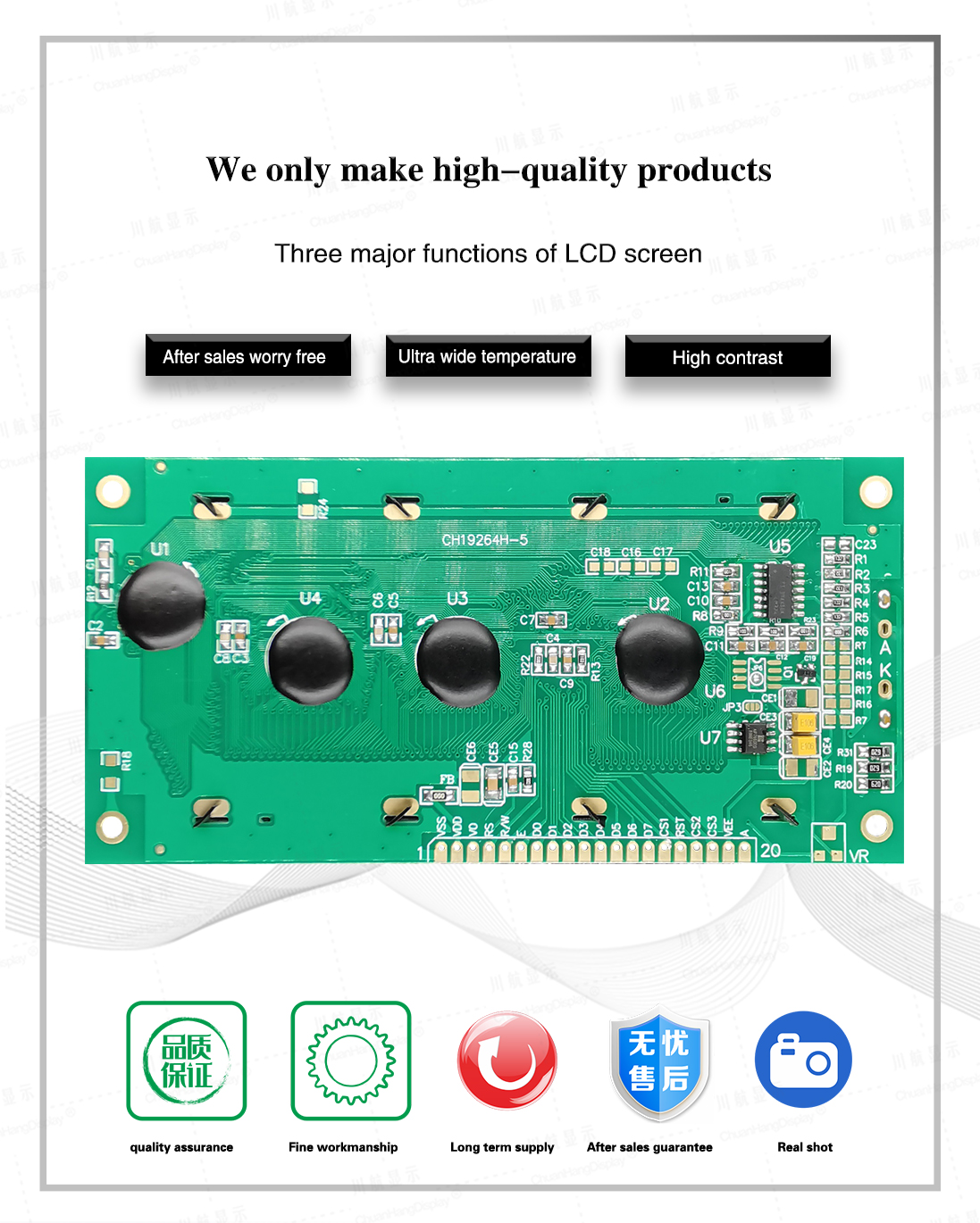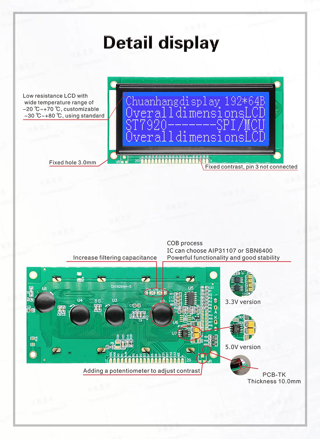 1.3 Low power consumption, there are two power modes of 5V/3.3V, no backlight current within 8mA, backlight current within 100mA.