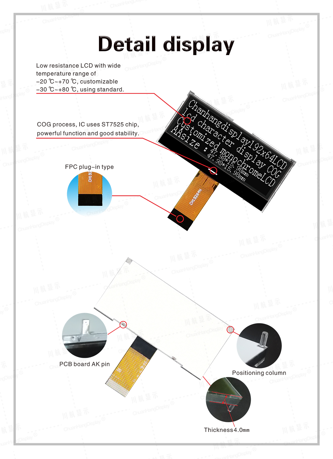 1.1 C0G process, FPC plug-in, product with backlight, thin thickness, stable structure.