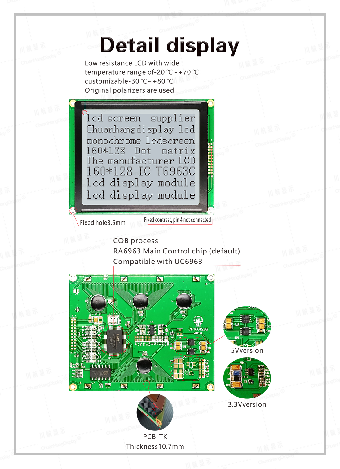 1.3 Low power consumption, with 5V/3.3V power modes, no backlight current within 8mA and backlight current within 150mA.