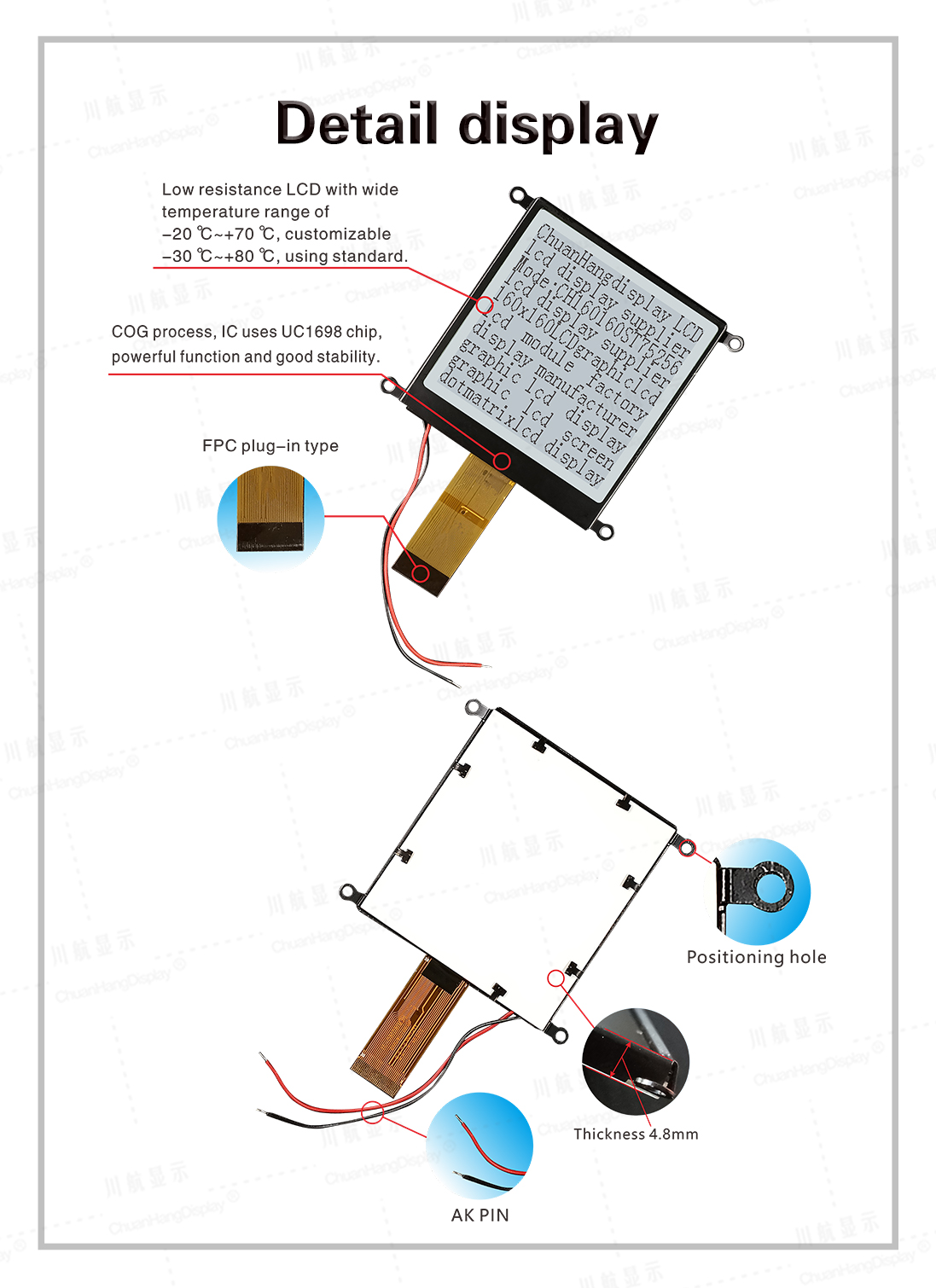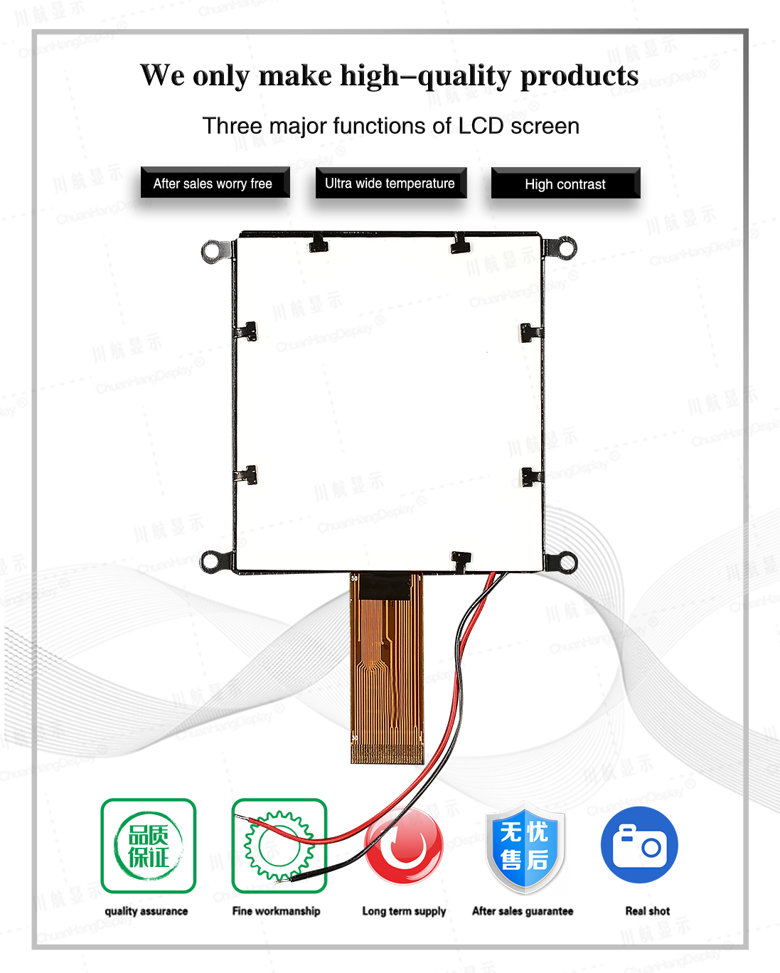 1.1 COG process, FPC plug-in, product with backlight, iron frame, thin thickness, stable structure.