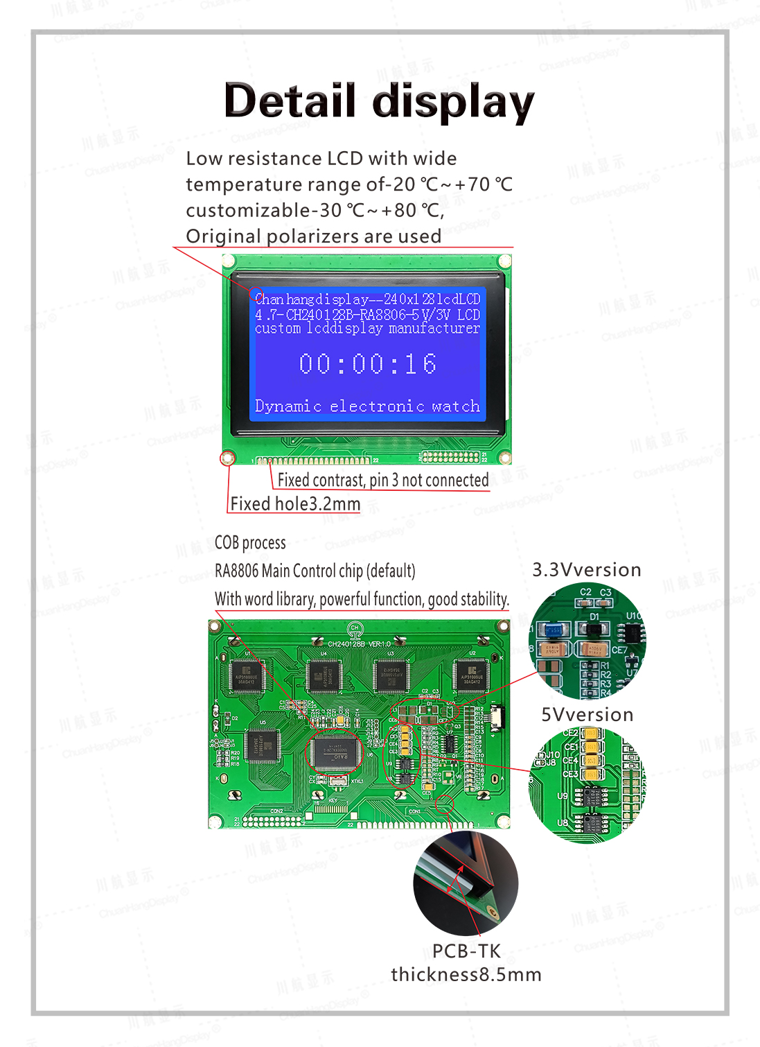 1.1 COB process, the product comes with PCB board, backlight, conductive tape connection, and stable structure.