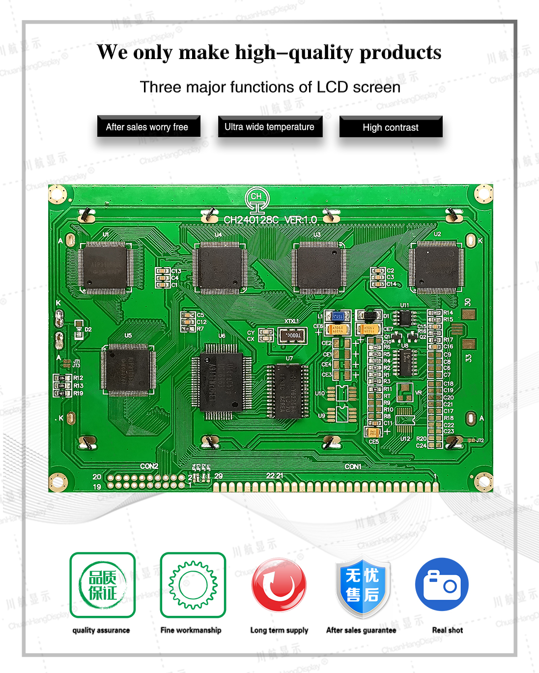 1.1 COB process, the product comes with PCB board, backlight, conductive tape connection, stable structure.