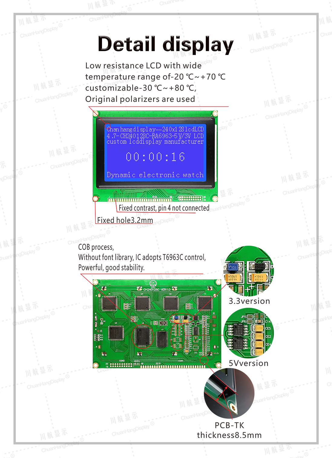 1.2 IC uses t6963c/uc6963, the chip has built-in character library ROM (CGROM), no Chinese character library, programmers compile Chinese character library.