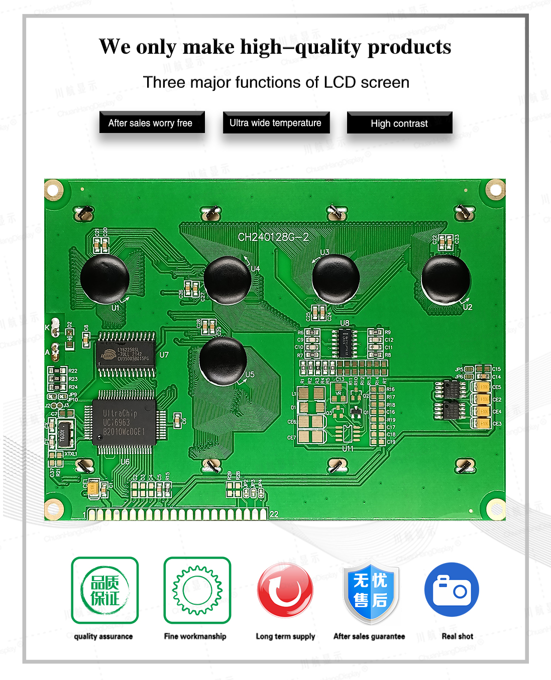 1.2 IC uses t6963c/uc6963, the chip has built-in character library ROM (CGROM), no Chinese character library, programmers compile Chinese character library.