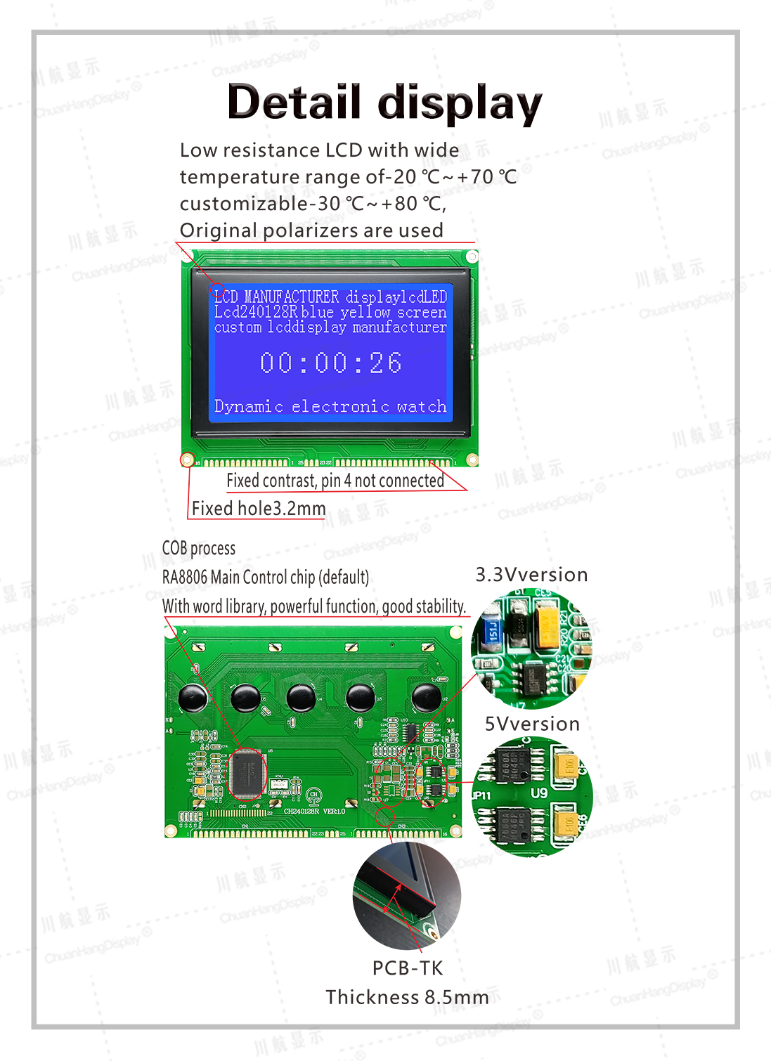1.1 C0B process, the product comes with PCB board, backlight, conductive tape connection, stable structure.