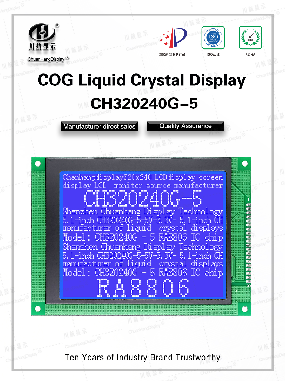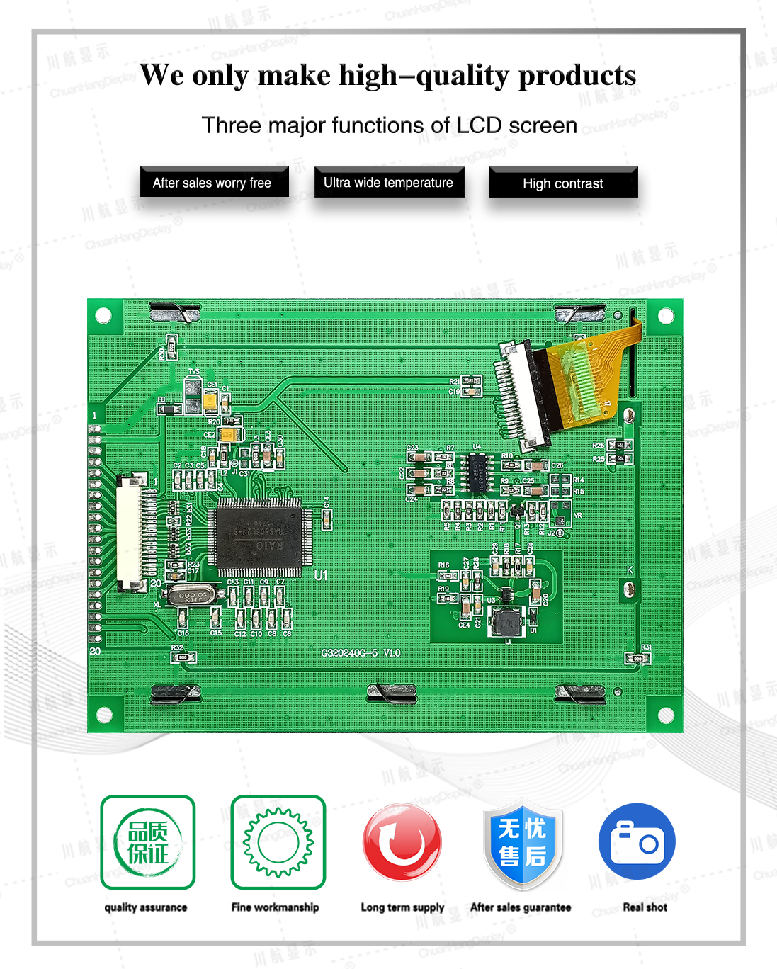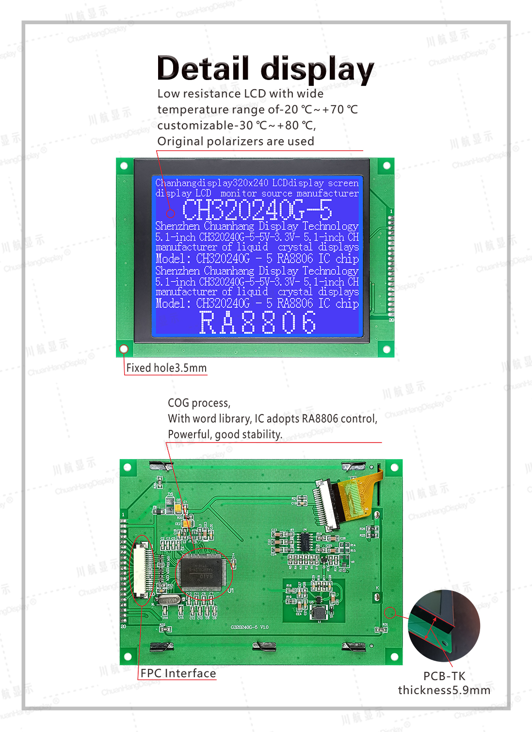 1.1 320*240 resolution, C0G process dot matrix LCD module, product with PCB board, LED backlight, FPC connection, stable structure.