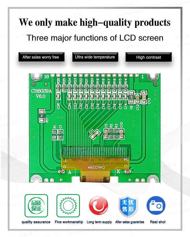 1.3 Low power consumption, only 3.3V power mode, no backlight current within 1mA, backlight current within 80mA Inside.