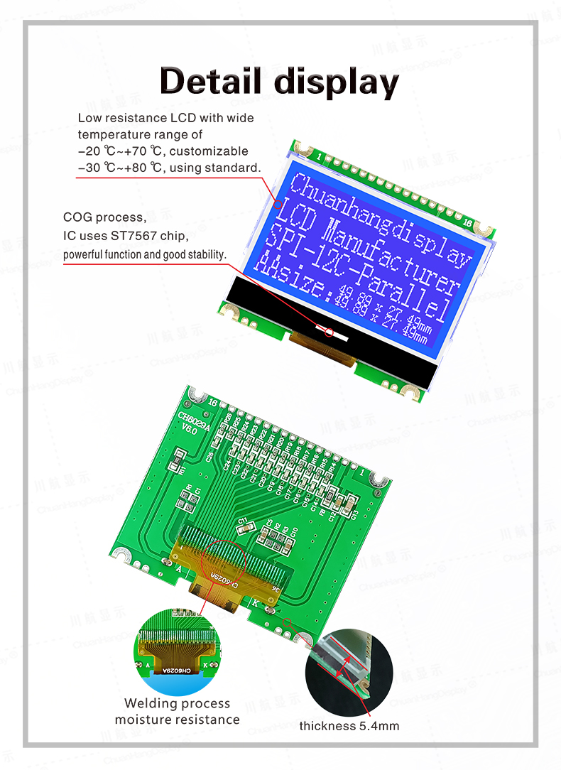 1.1 COG process, FPC welding process, product with PCB board, backlight, thin thickness and stable structure.