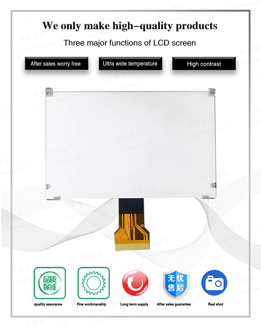 1.3 Low power consumption, 3.3V power supply mode, no backlight current within 1mA, backlight current within 80mA.