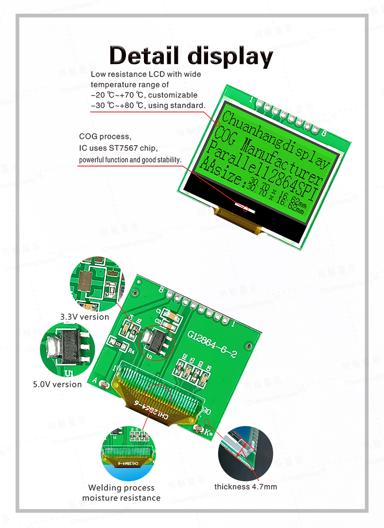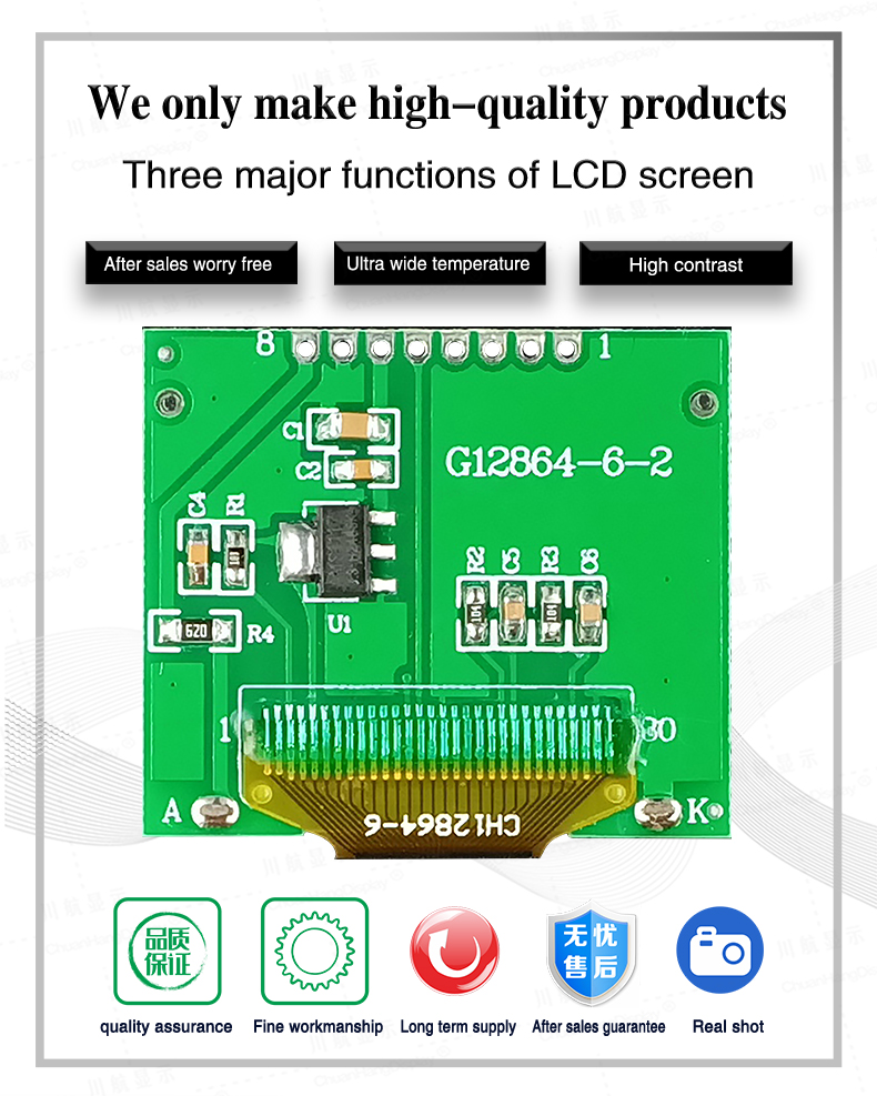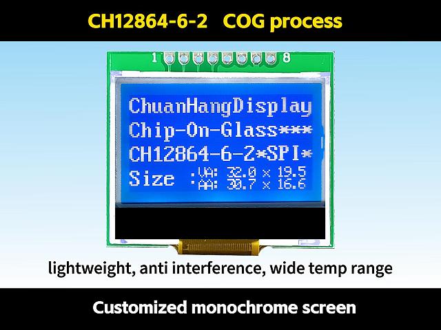 1.1 COG process, FPC soft wire is a welding port, the product is equipped with PCB board, with backlight, thin thickness and stable structure.