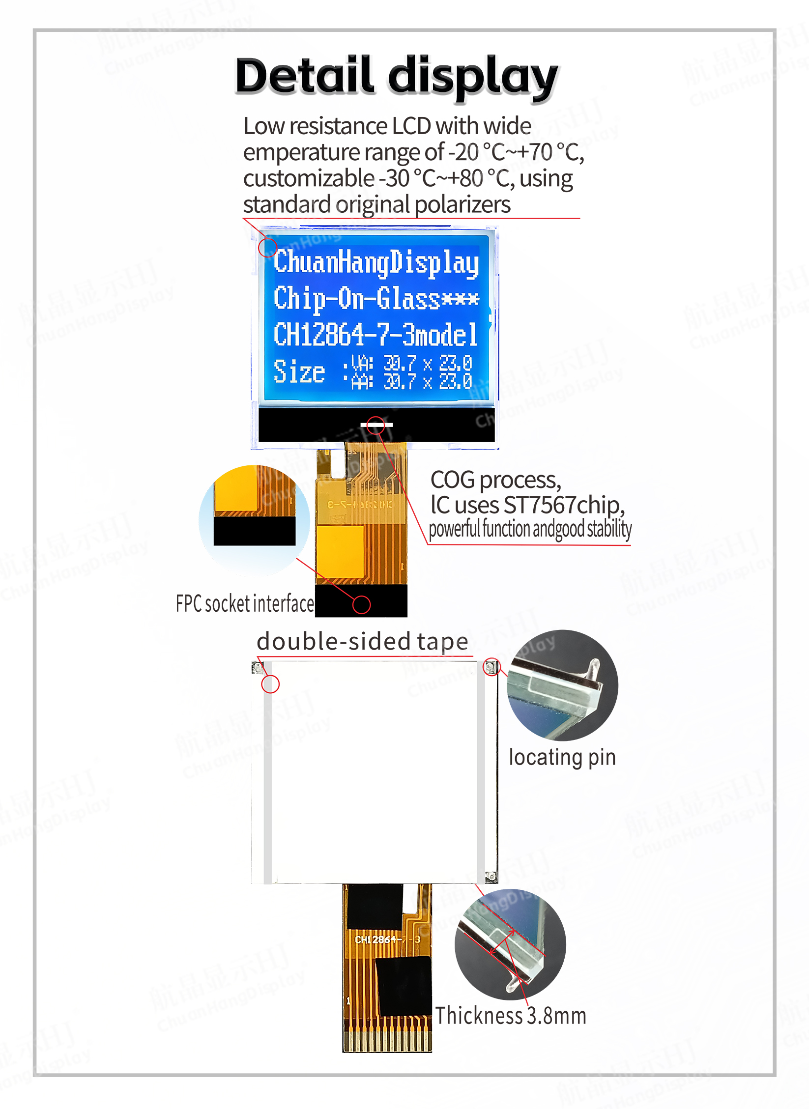 1.1 COG process, FPC soft line is the plug-in interface, the product has backlight, has been assembled, thin thickness, and stable structure.
