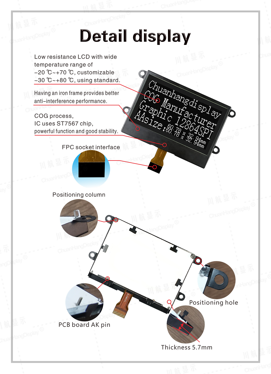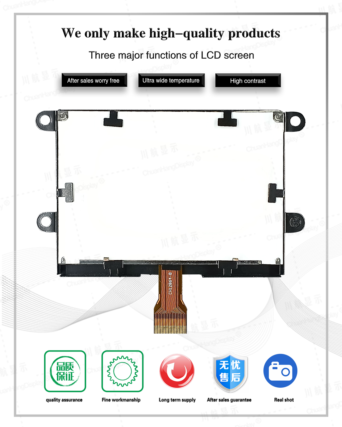 1.1 COG process, FPC soft wire is plug-in interface, product with backlight, iron frame, assembled, thin thickness, structure Stable.