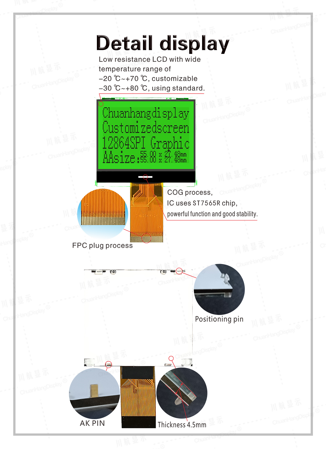 1.1 COG process, FPC soft line is the plug-in interface, the product has backlight, has been assembled, thin thickness, and stable structure.
