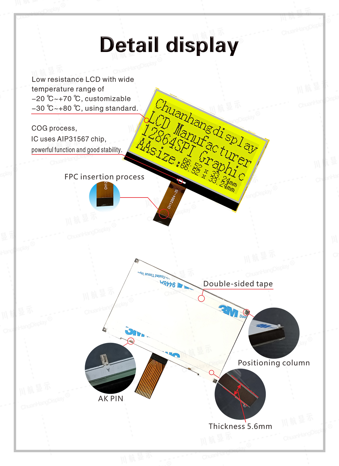 1.1 COG process, FPC soft wiring is a plug-in interface, the product has a backlight, thin thickness and stable structure.