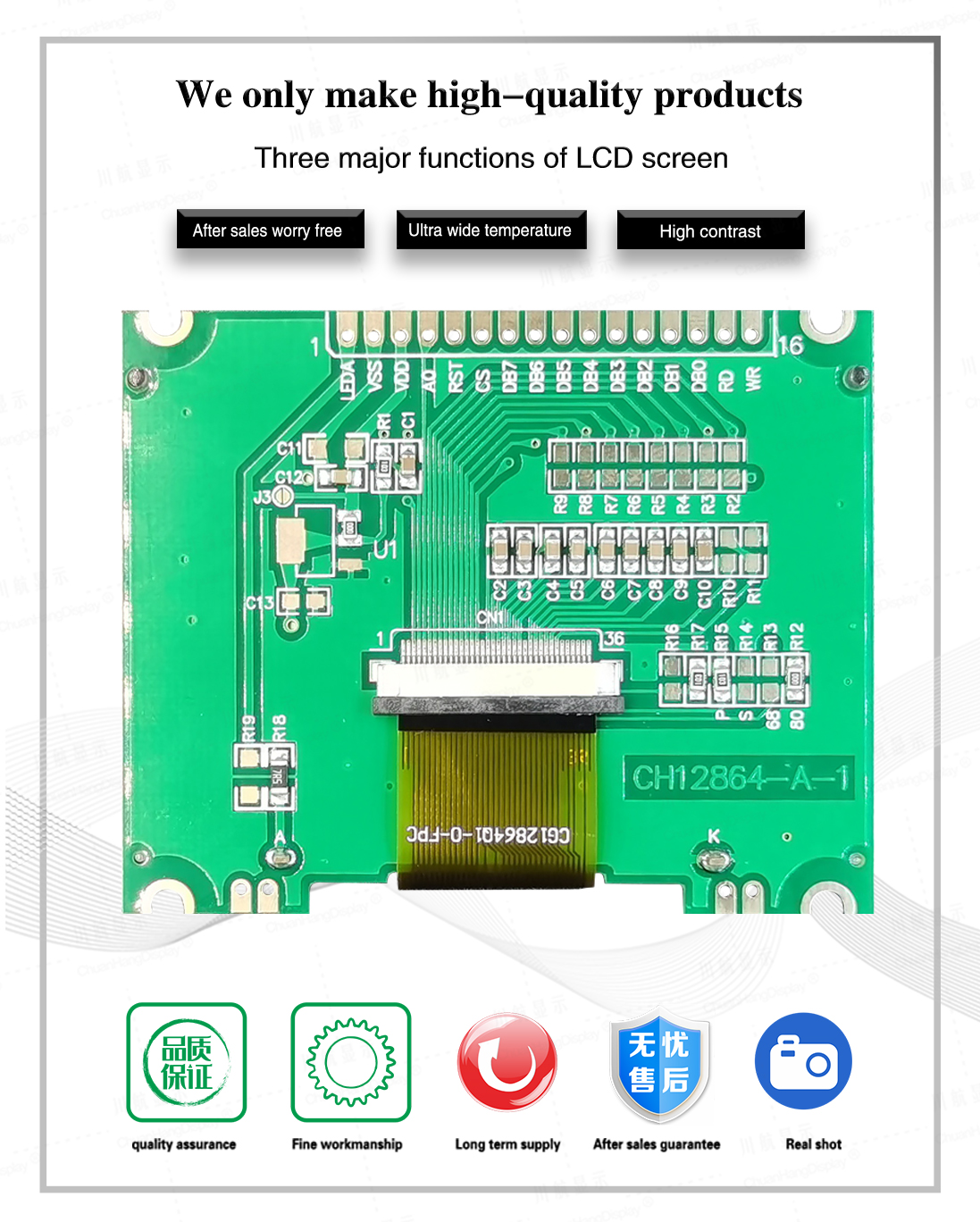 1.3 Low power consumption, 3.3V power mode, no backlight current within 1mA and backlight current within 80mA.