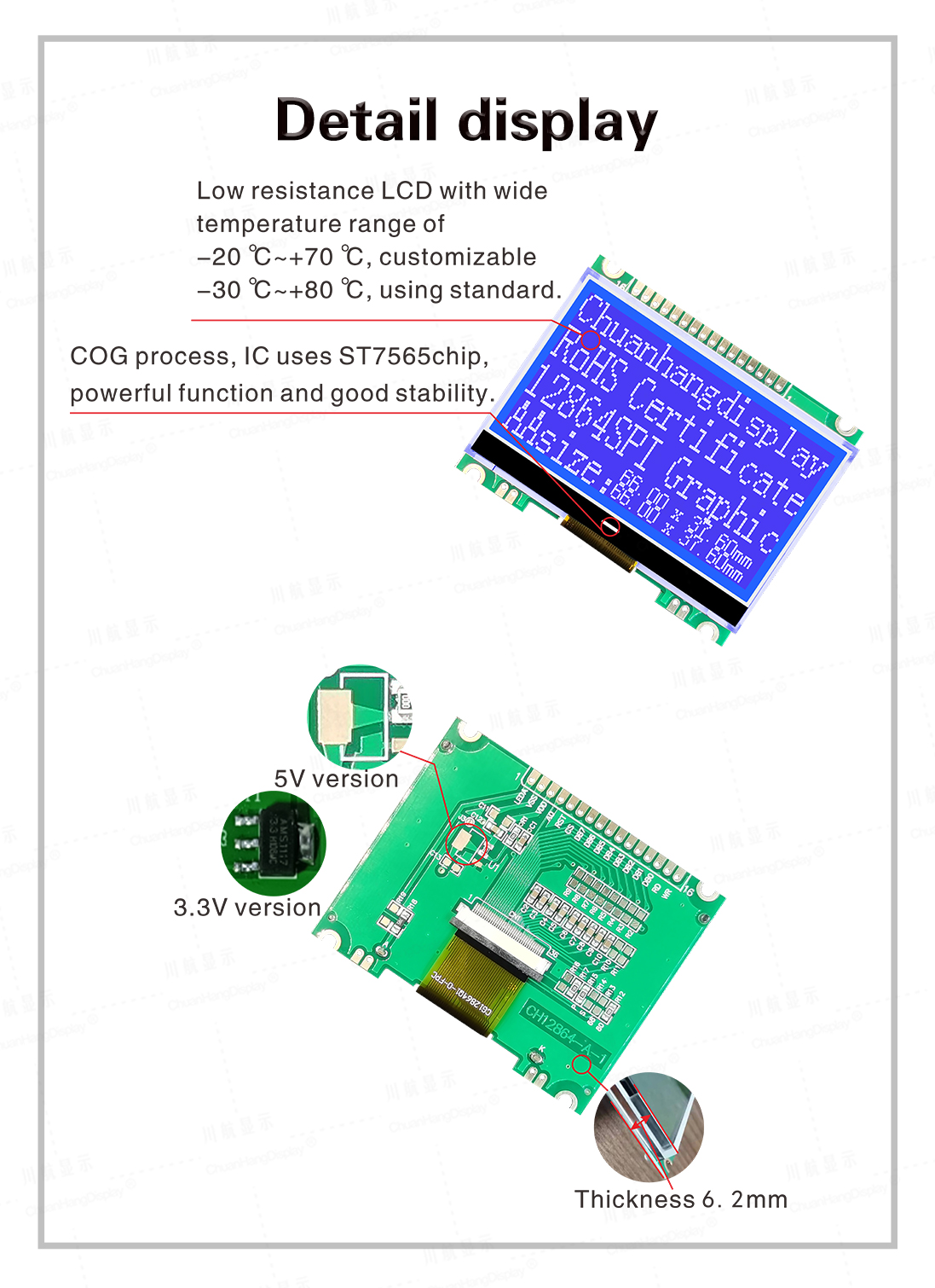 1.2 IC uses ST7565R. There is no font library in the chip, and the programmer compiles his own font library.