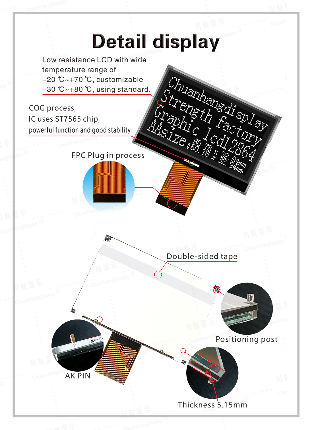 1.1 COG process, FPC soft line is the plug-in interface, the product has backlight, has been assembled, thin thickness, and stable structure.