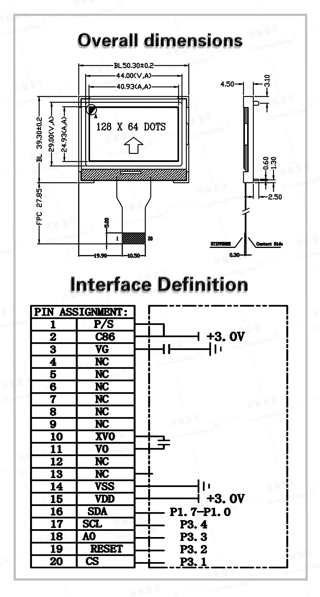 1.4 LED backlights A and K are PCB boards, and A and K need to be powered separately by 2.9V~3.0V.