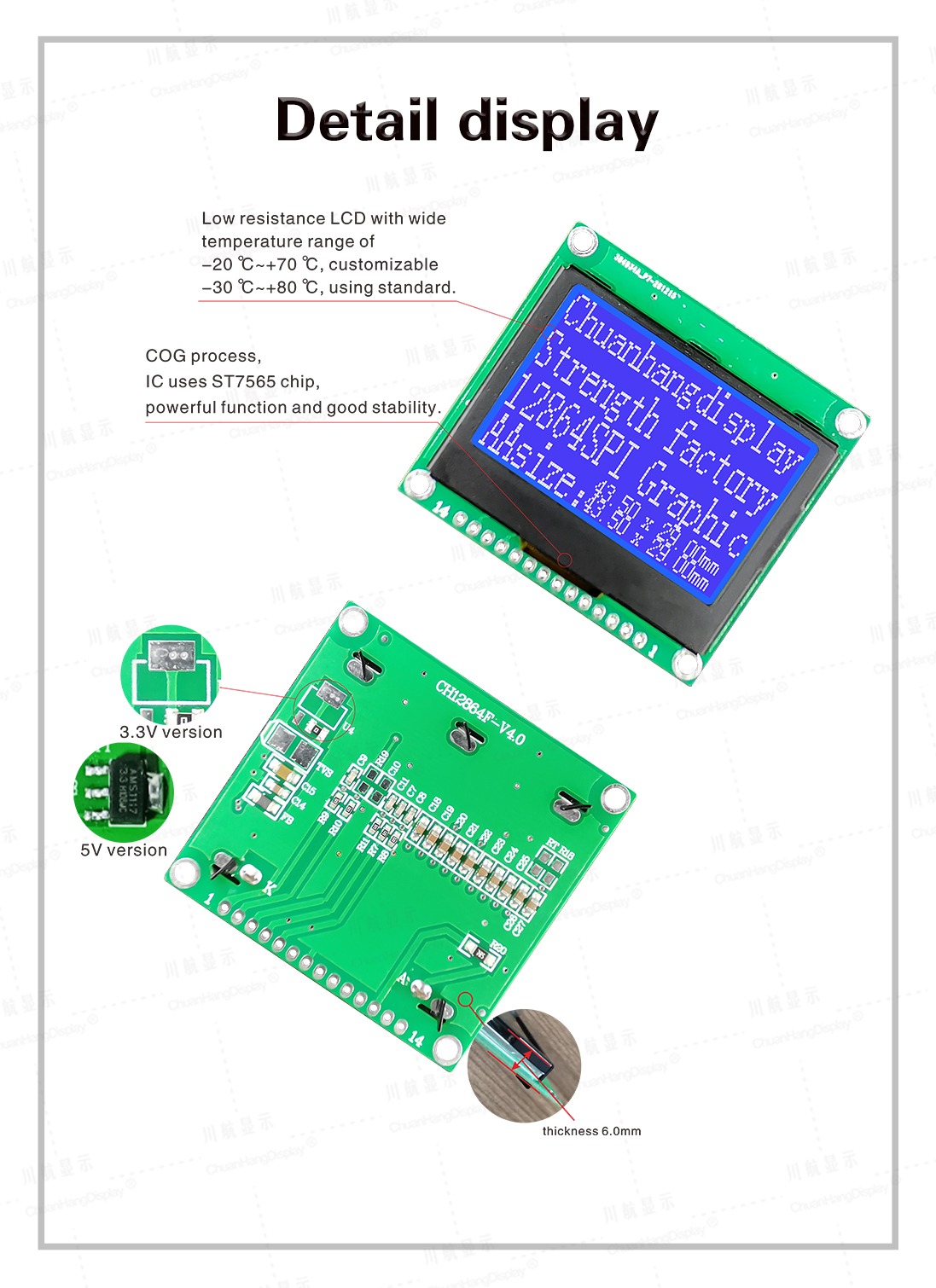 1.1 COG process, FPC wiring welding process, product with pcb board, backlight, thin thickness and stable structure.
