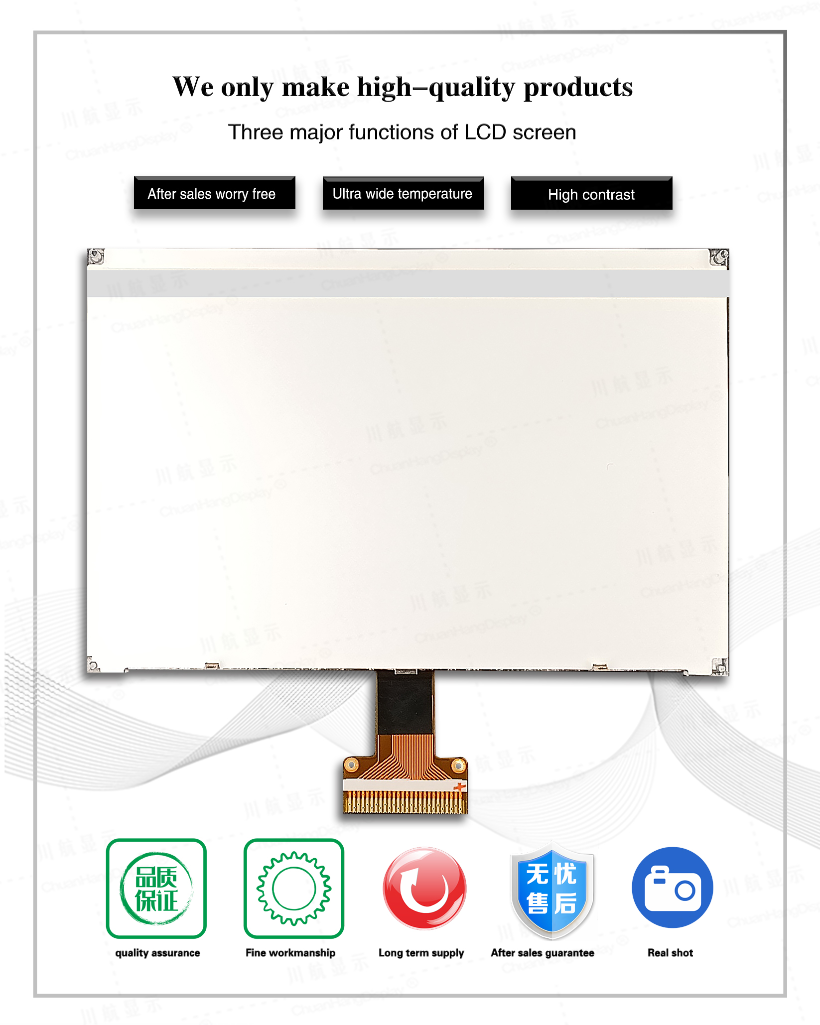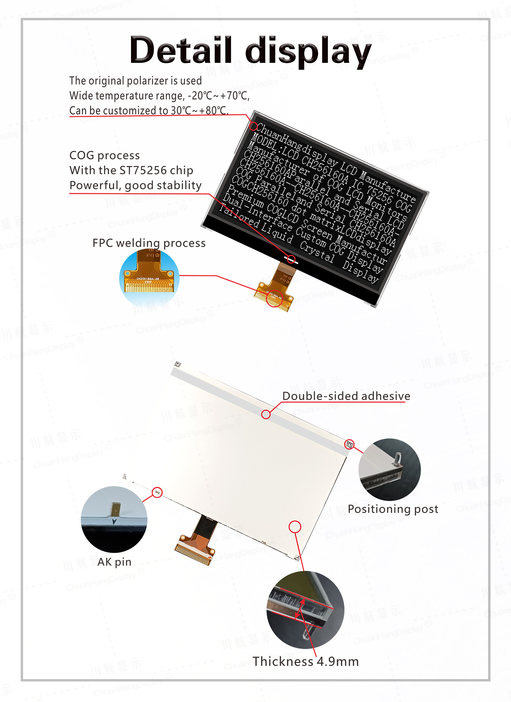 1.1 COG technology, FPC soft line is welded, the product has backlight, has been assembled, thin thickness, stable structure.
