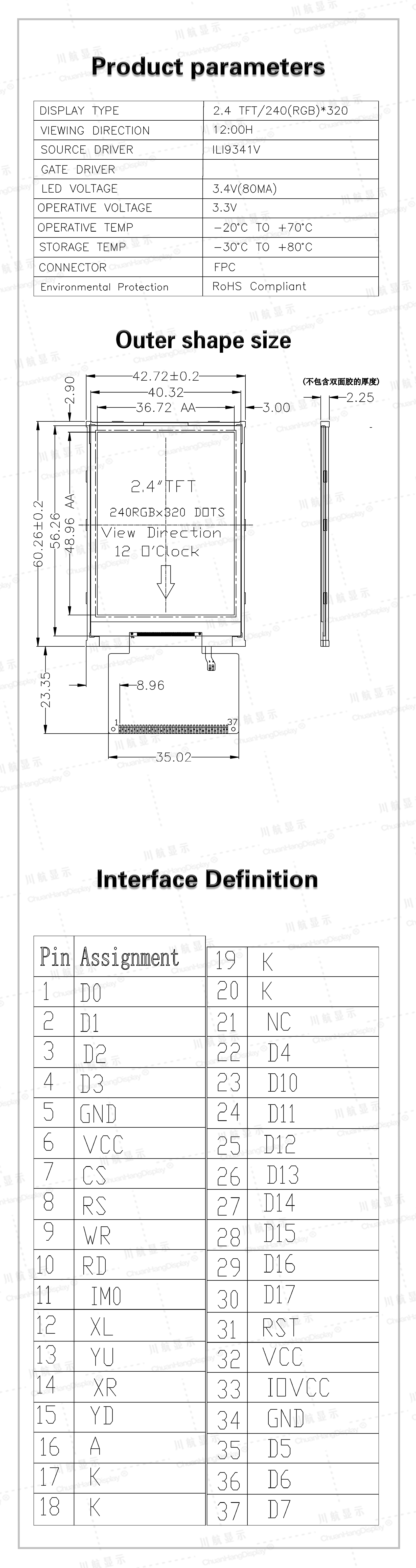 2.4 inch 240xRGBx320 TFT