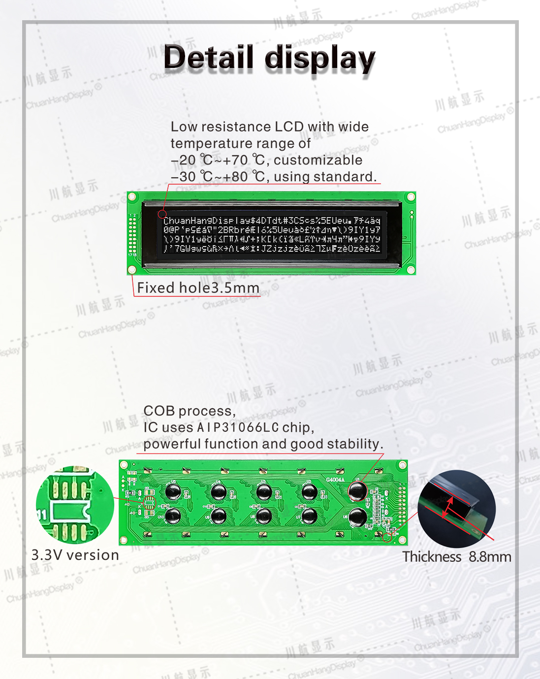 1.3 Low power consumption, 5V/3.3V two power modes, no backlight current within 3mA, with backlight current within 20mA.