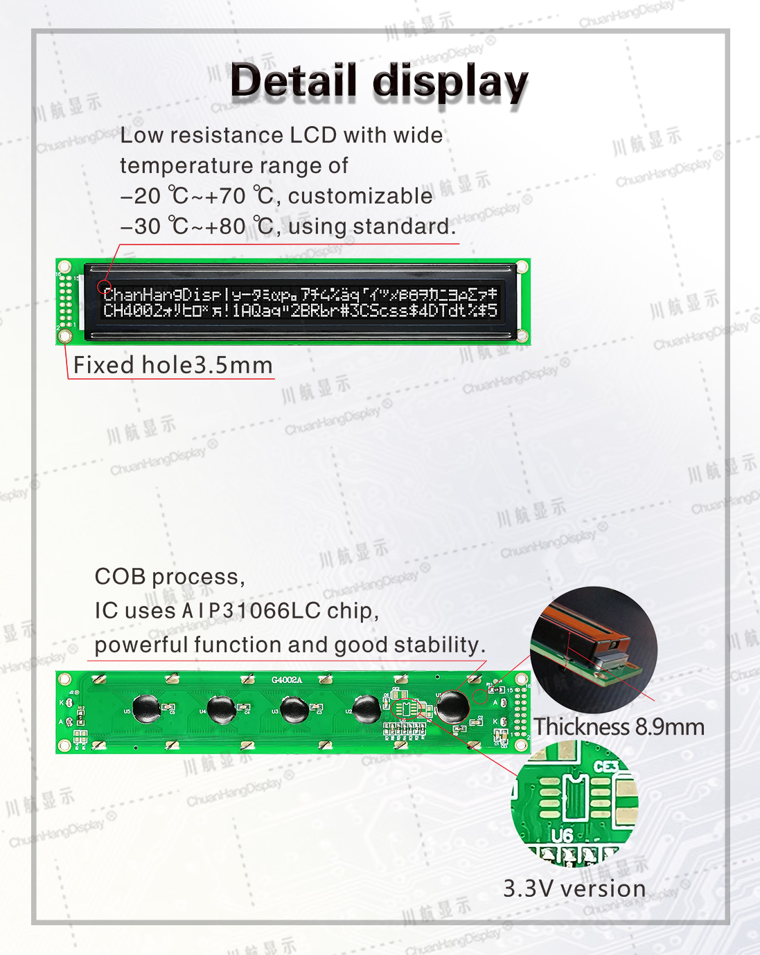 1.3 Low power consumption, 5V/3.3V two power modes, no backlight current within 3mA, with backlight current within 20mA.