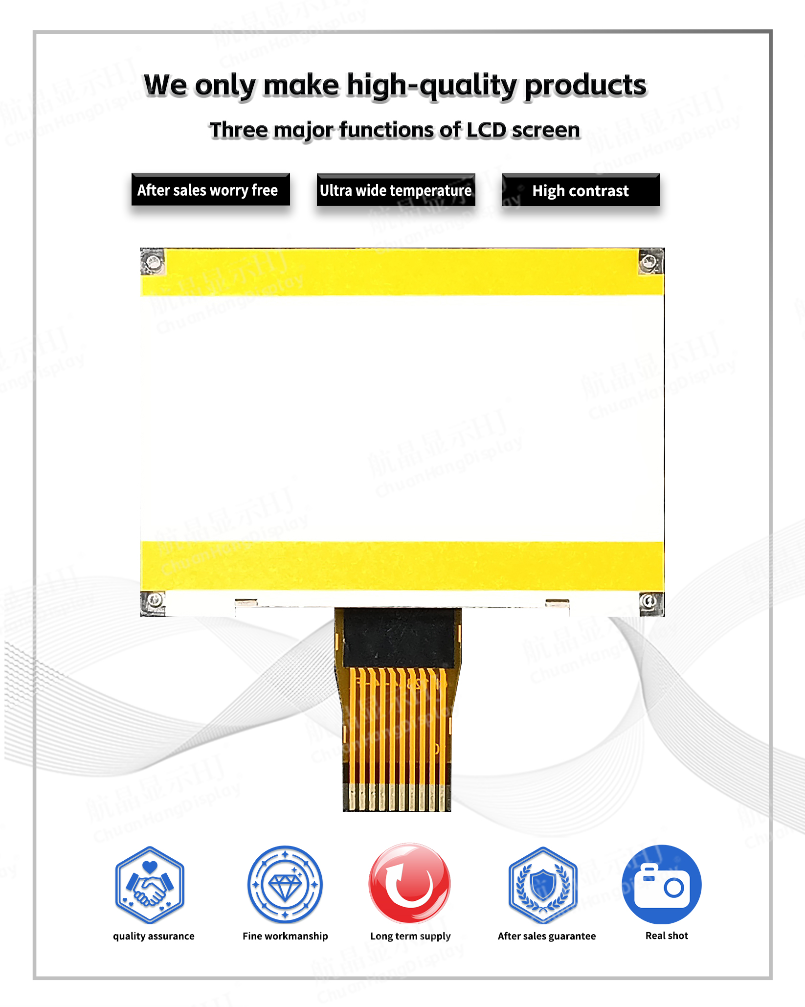 1.3 Low power consumption, 3.3V power supply mode, no backlight current within 1mA, backlight current within 60mA.