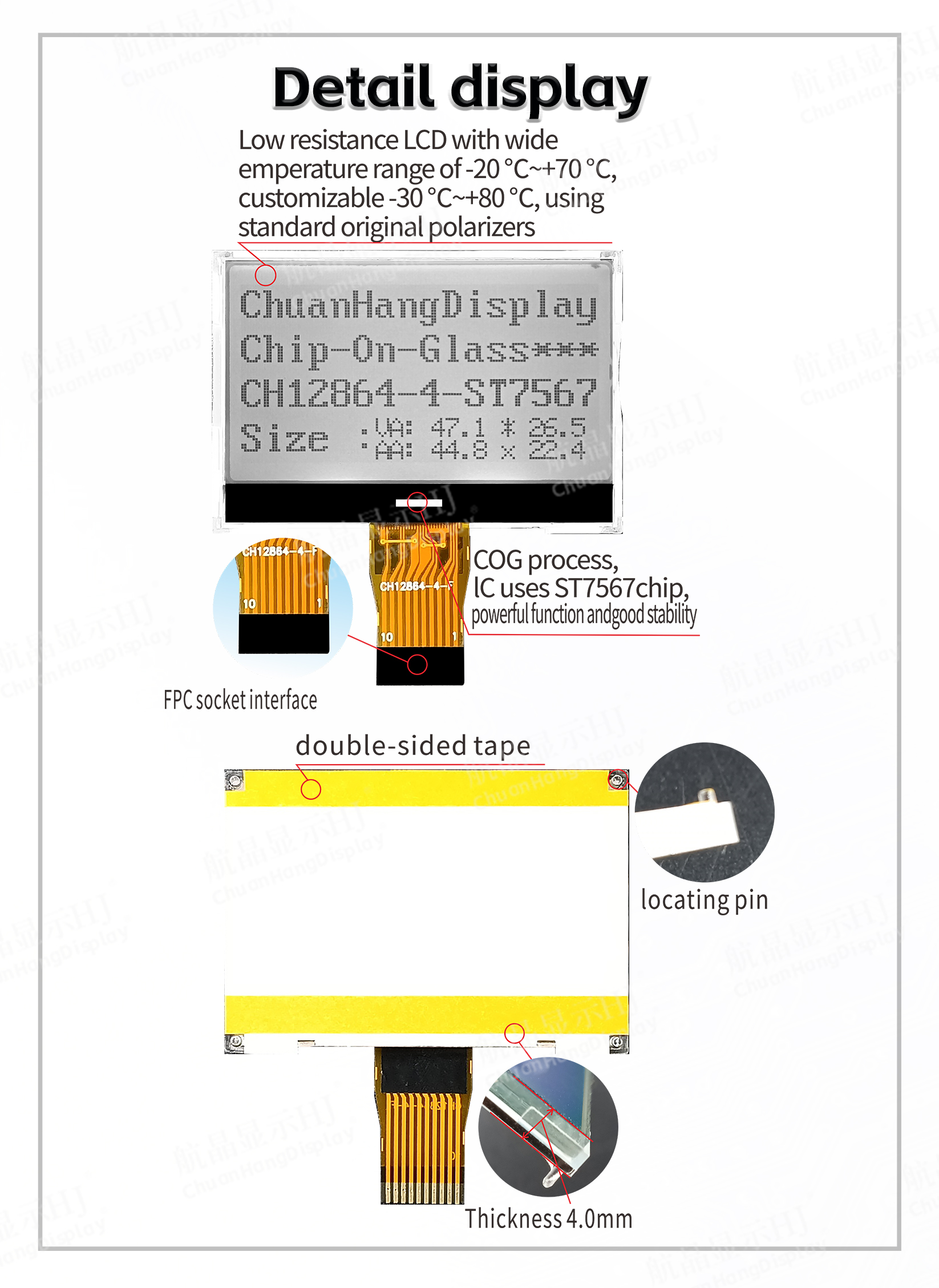 1.4 LED backlights A and K are FPC wiring, and A and K need to be powered separately by 2.9V~3.0V.