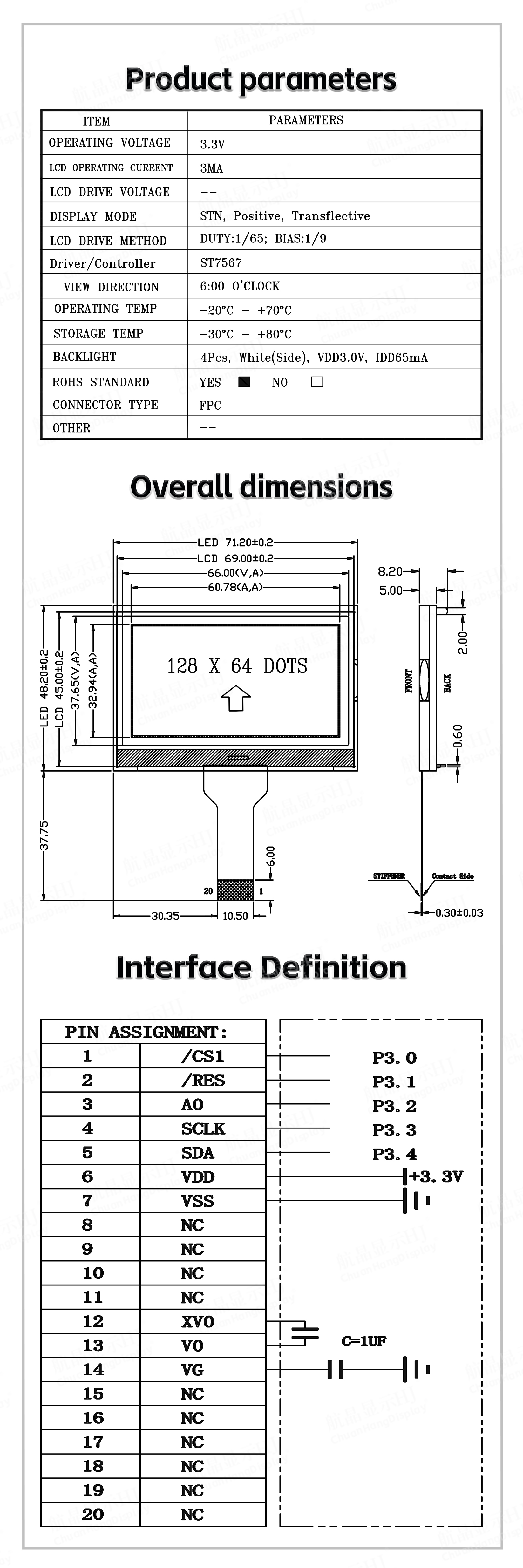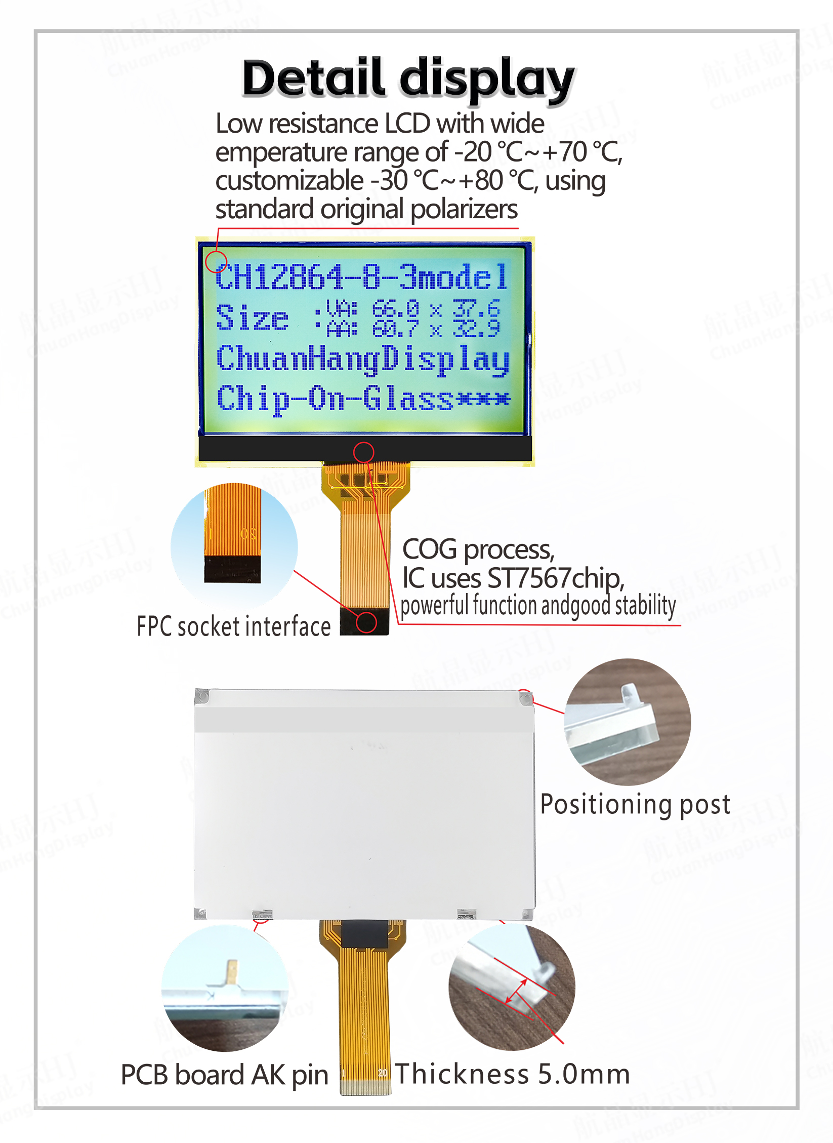 1.3 Low power consumption, 3.3V power supply mode, no backlight current within 1mA, with backlight current within 80mA.