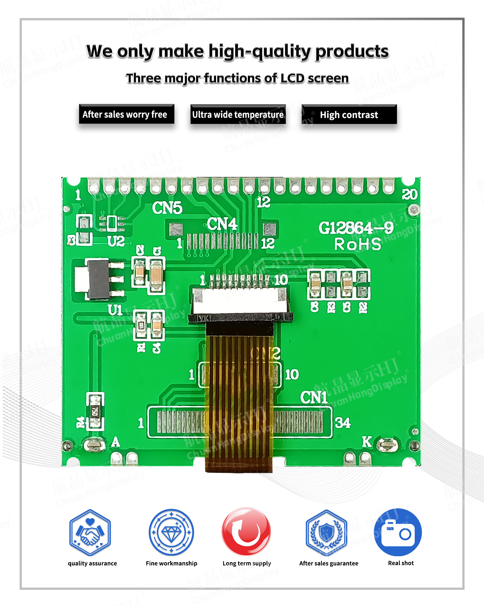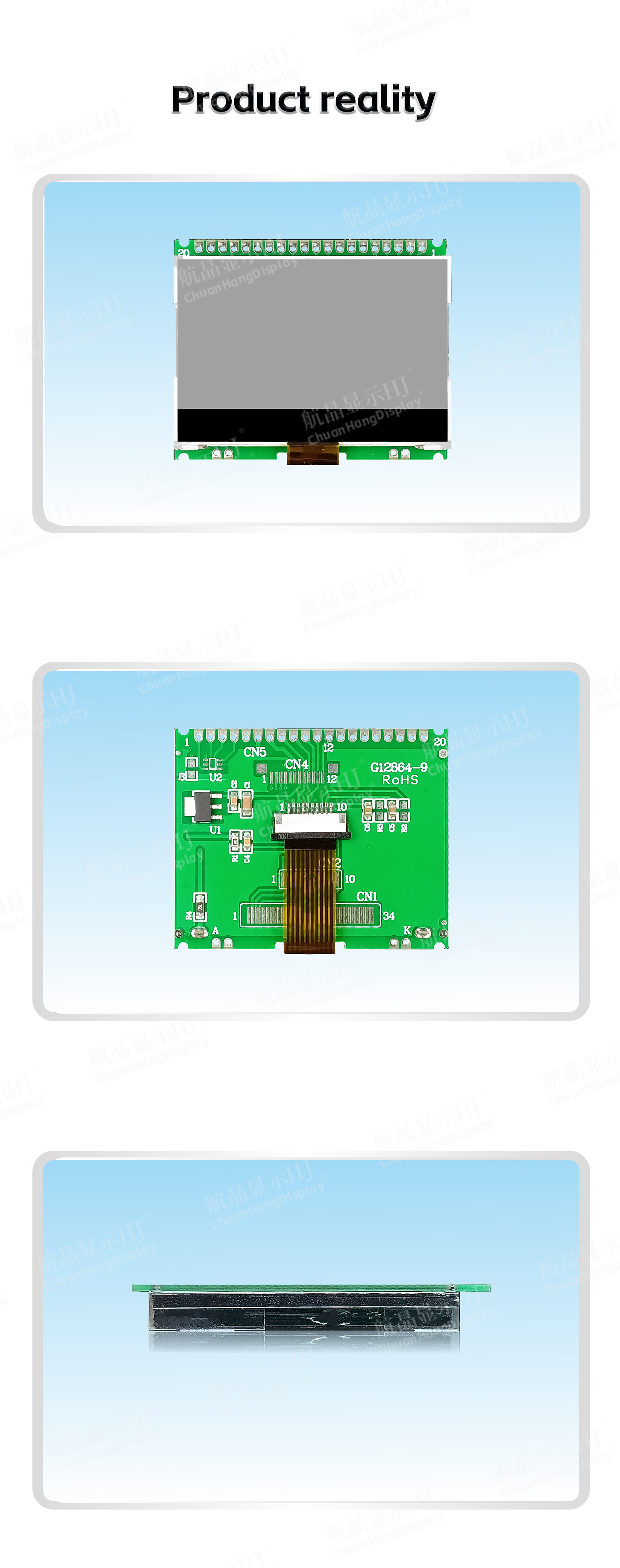 1.1 COG process, FPC soft wiring is a plug-in interface, the product is equipped with PCB board, backlight, thin thickness and stable structure.