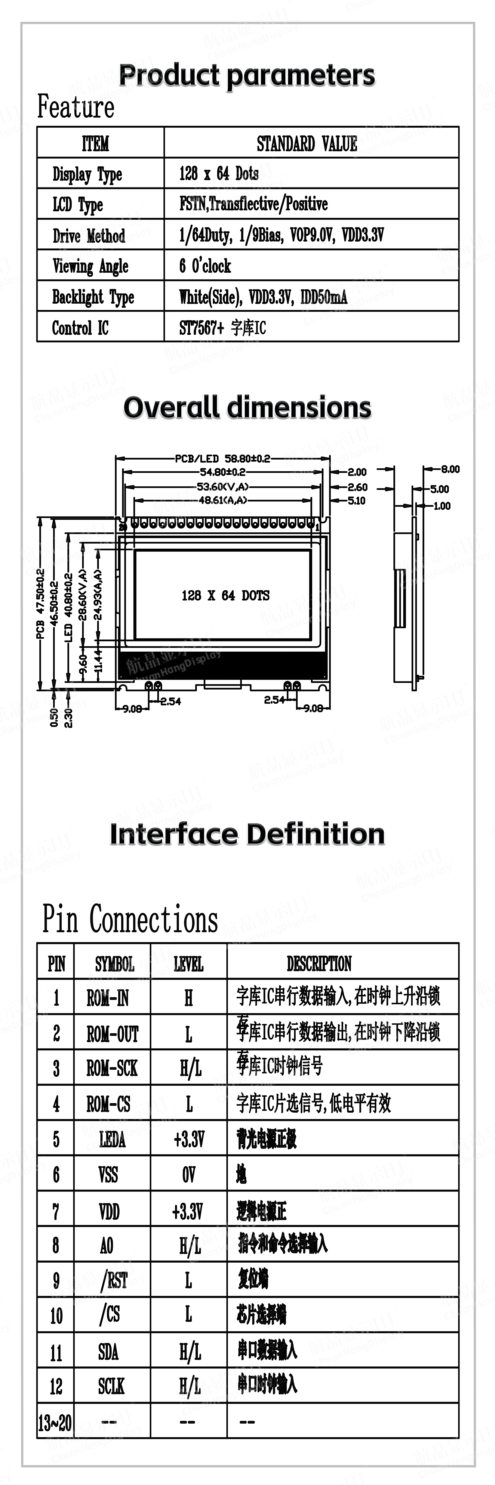 ●Single picture ≦128x64 dot matrix. 4-wire SPI interface communication.